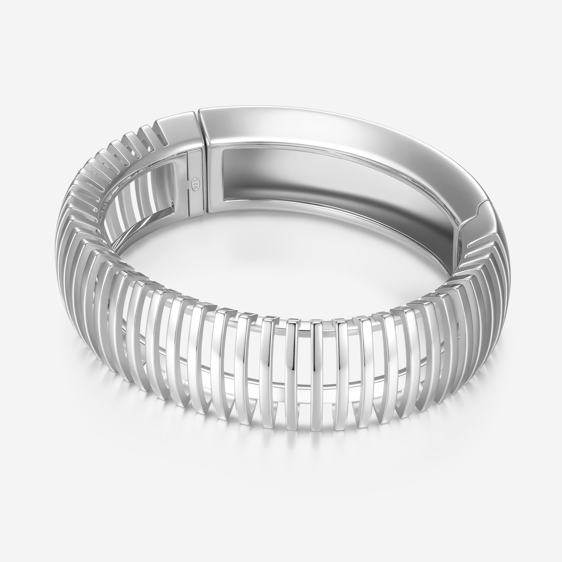 in 925 sterling silver with segmented openwork and a solid–void effect