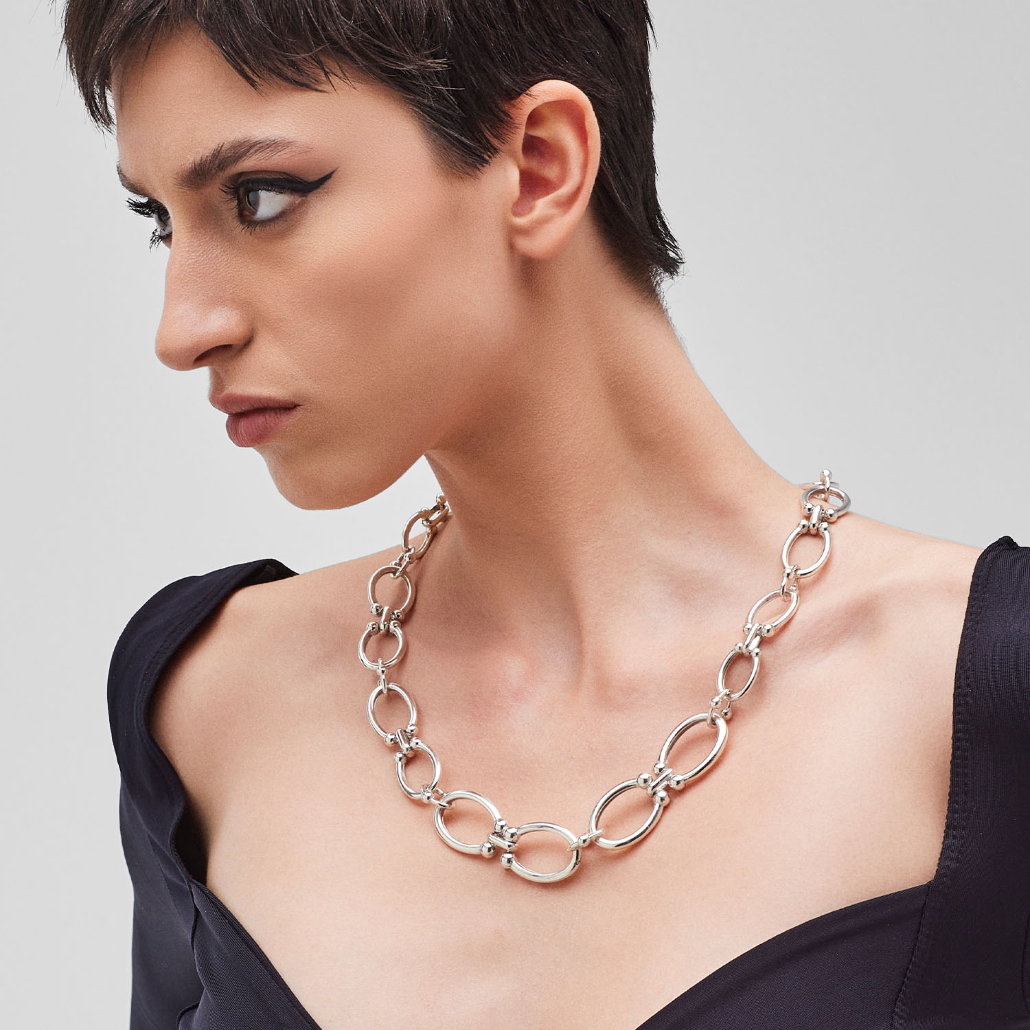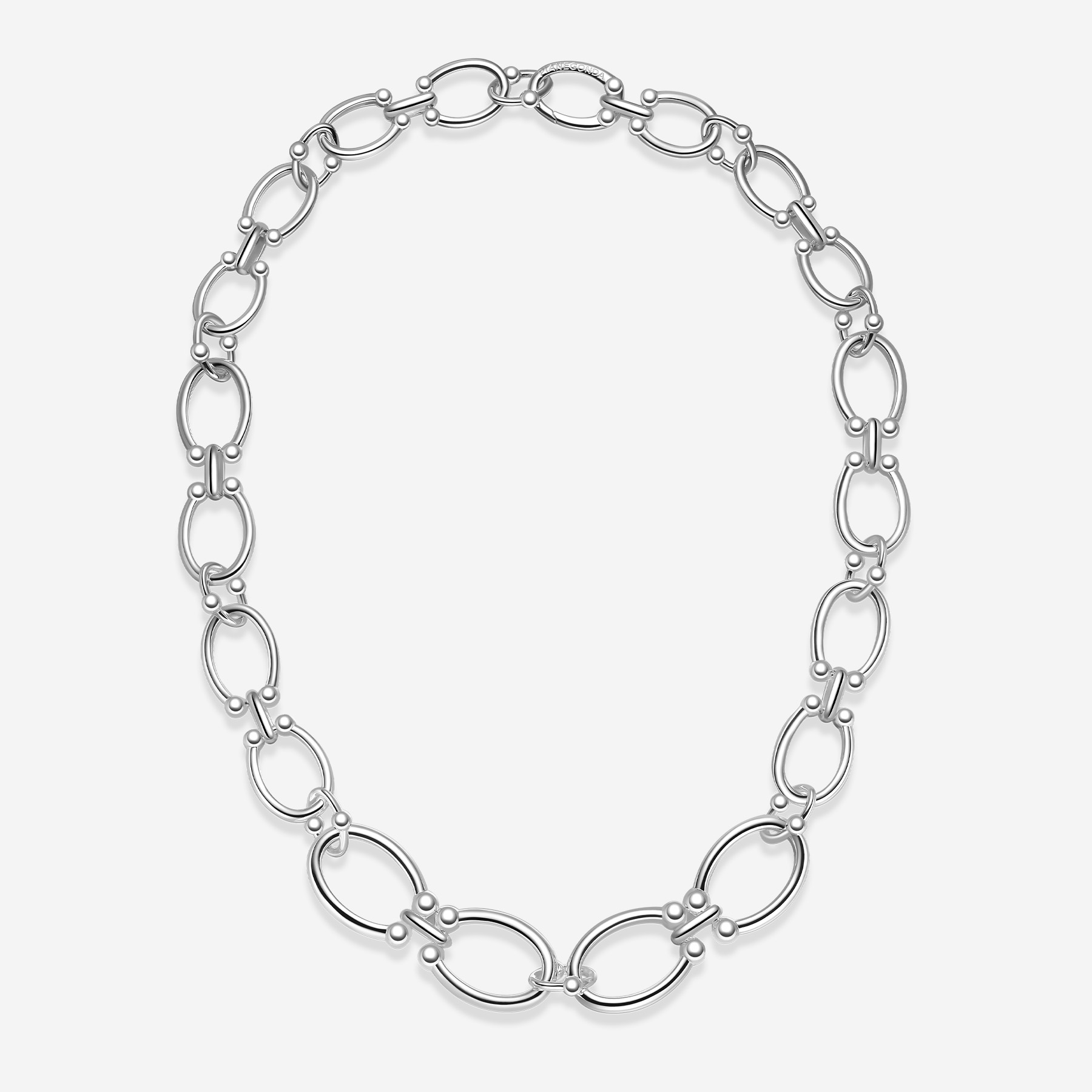 The Assoluto long chain symbolizes the indissoluble electrical connection between separate elements that, when they meet, complete each other infinitely, creating something new. This magnetic encounter of attractive forces is reflected in the connections between human beings, when people come together and complement each other through the mysterious laws of attraction. The long Assoluto chain has the power to radiate the magnetic attraction inherent in each of us.