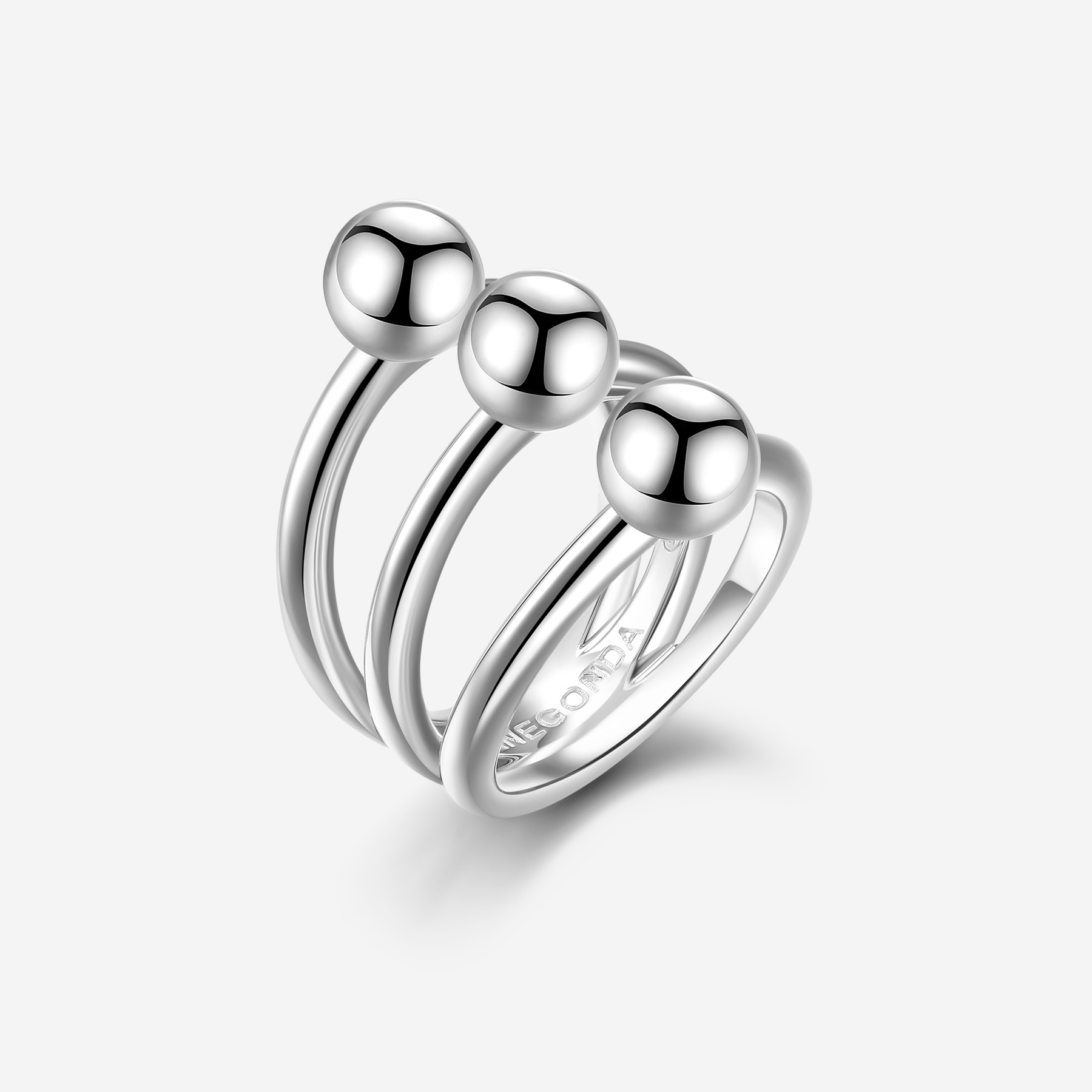 The Assoluto multi-band ring is inspired by the phenomenon of electricity, which in ancient Greek mythology was associated with the goddess Elektra. The spheres represent the eternal movement of electrons, imperceptibly omnipresent in all matter. Just like electrons, the 925 silver spheres seem to orbit around the fingers, giving new vitality to a cosmic symbolism that brings with it values such as luck, courage and strength. You will immediately feel inspired by its playful vitality.
