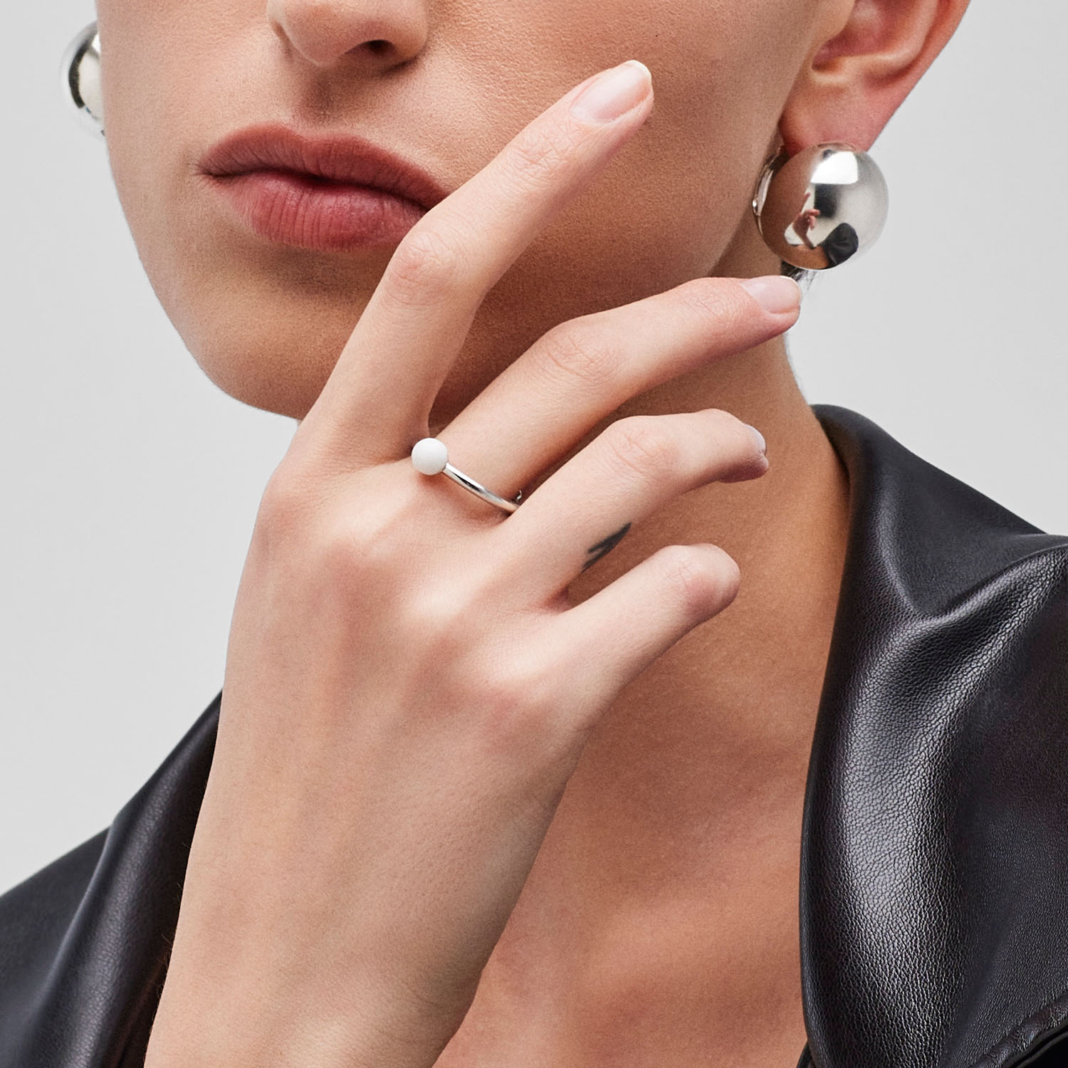 in 925‰ sterling silver with a sphere of white agate and a silver sphere