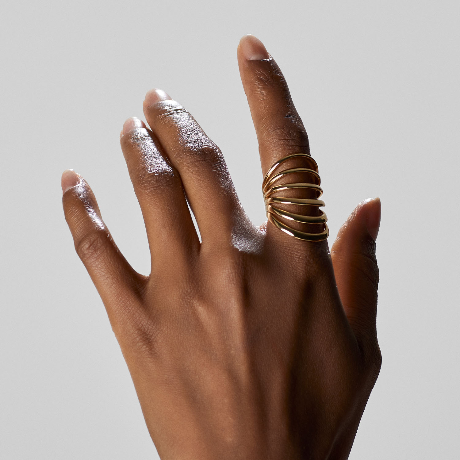 The MVP Wardrobe x Pianegonda capsule collection is born from the encounter between the sculptural design of contemporary jewelry and the bold style of fashion, merging goldsmithing tradition with a modern vision to create pieces that express strength and personal freedom. This is a creative synergy where the aesthetics of MVP WARDROBE — the brand founded by entrepreneur and designer Maria Vittoria Paolillo — meets the savoir-faire of Pianegonda, giving life to a capsule that blends the sculptural elegance of contemporary jewelry with the bold and sophisticated style of fashion design. The capsule collection features rings and earcuffs in 925 sterling silver, brass, and 18k gold, ruthenium, and rhodium plating. The concept is based on the idea of full expression across five fingers, where rings can be combined to create a bold and recognizable look.