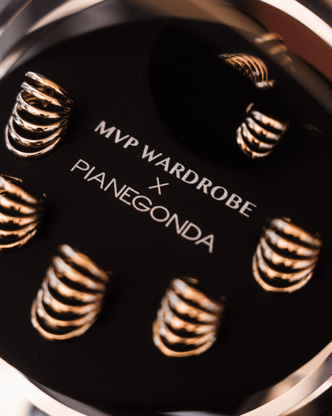 Questa capsule nasce da un dialogo autentico tra due mondi solo apparentemente distanti: la gioielleria scultorea e sperimentale di Pianegonda e l’estetica sofisticata e contemporanea di MVP Wardrobe. Un intreccio creativo che esplora nuove prospettive di stile, valorizzando l’immagine di una donna elegante, indipendente e seducente — valori condivisi dai due brand.